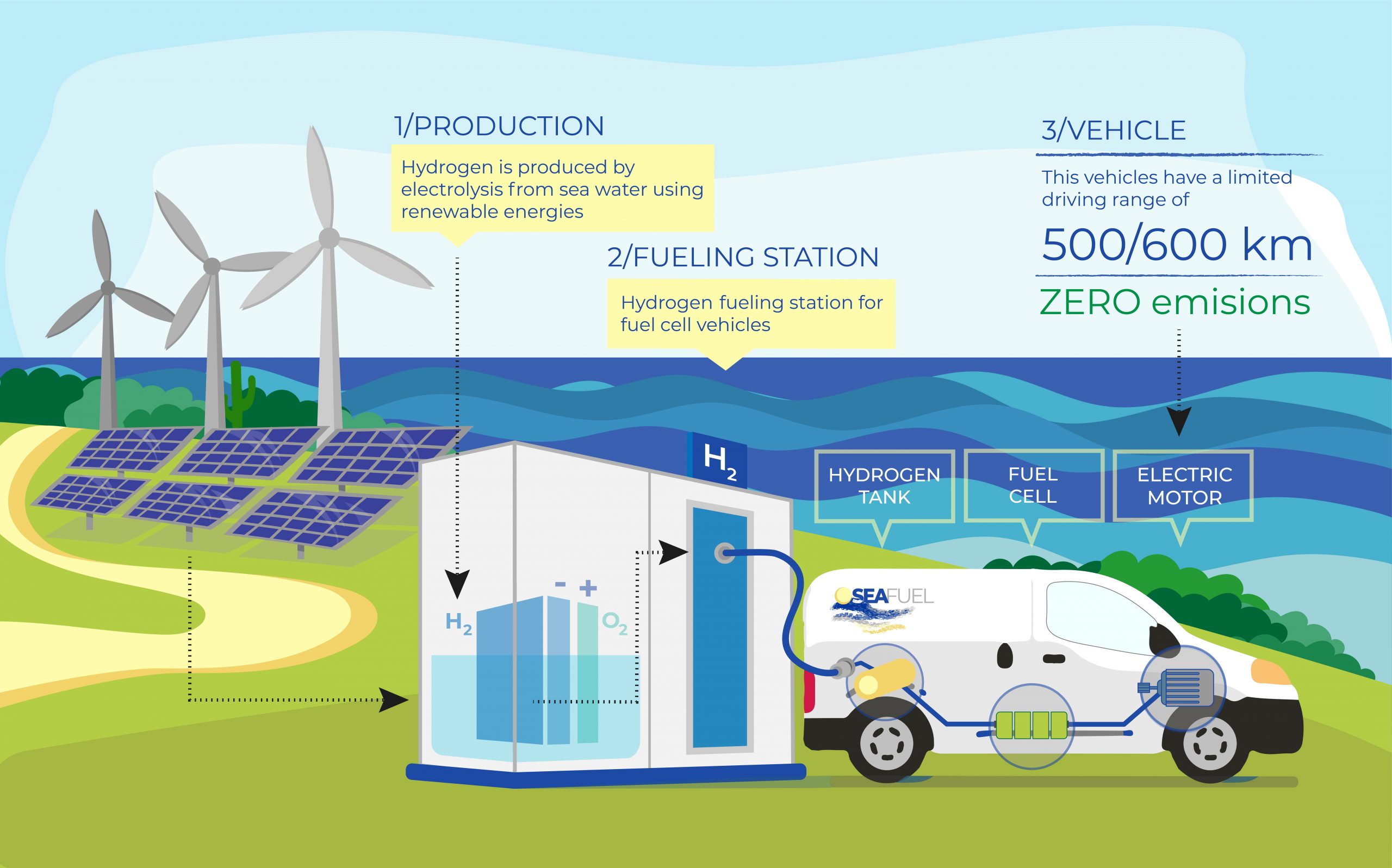 SEAFUEL aims to demonstrate the feasibility to power local transportantion networks using fuels produced by renewable energies and seawater, with no net carbon footprint as promoted by the resource-efficient flagship initiative COM(2010)2020