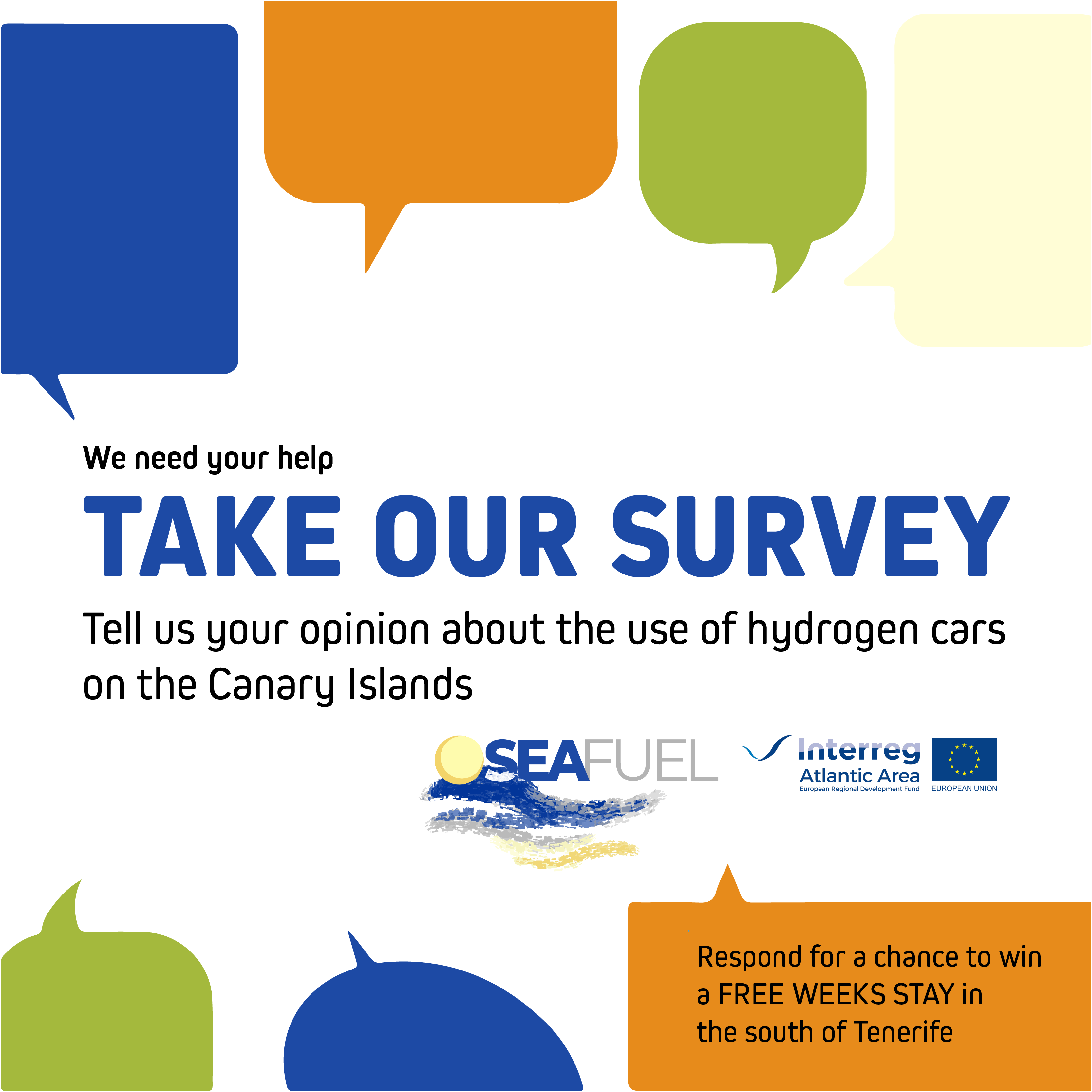The survey aims to gather information on tourist preferences, attitudes and views for using hydrogen cars on the Canary Islands and, as part of the research that we are carrying out within SEAFUEL project, it will give us an overall picture of social and economic impact of hydrogen end-use technologies.